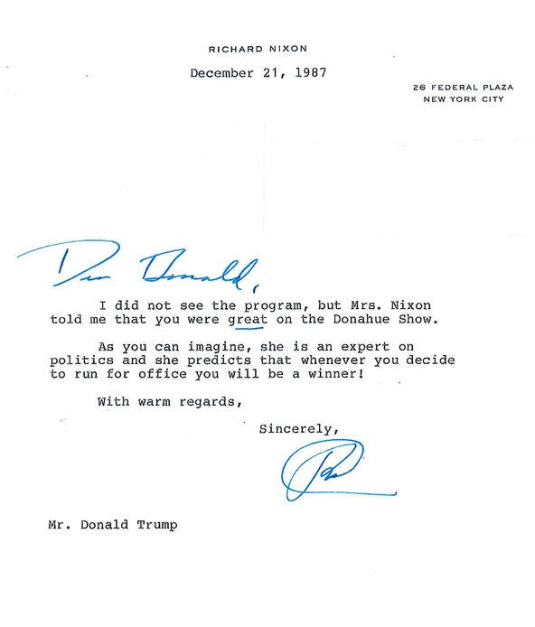 We know that Trump and Nixon spent a lot of time together in New York in the 1980s from several Trump-Nixon letters that were recently published in the Nixon Library.